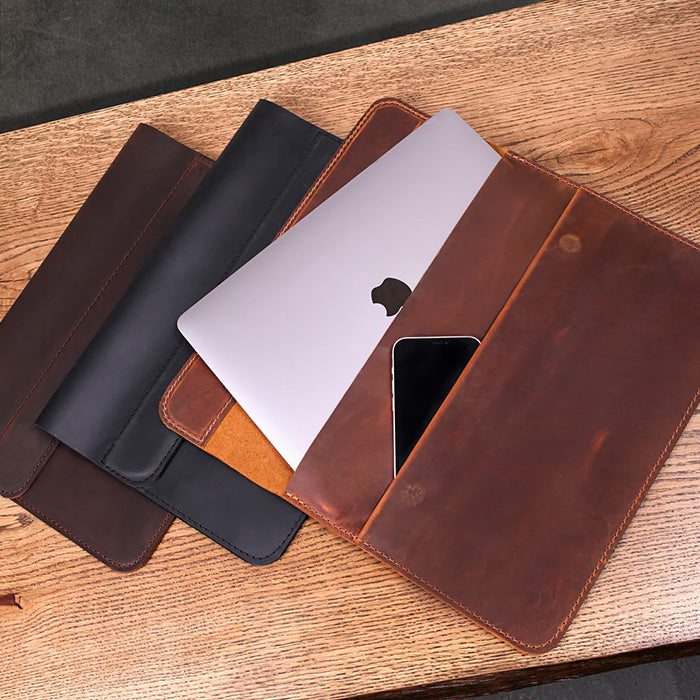 Każde etui na laptopa jest starannie wykonane z wysokiej jakości prawdziwej skóry, znanej ze swojej trwałości i ponadczasowego wyglądu. Giętka skóra nie tylko zapewnia barierę ochronną przed zadrapaniami i uderzeniami, ale także dodaje odrobinę wyrafinowania do codziennego noszenia.